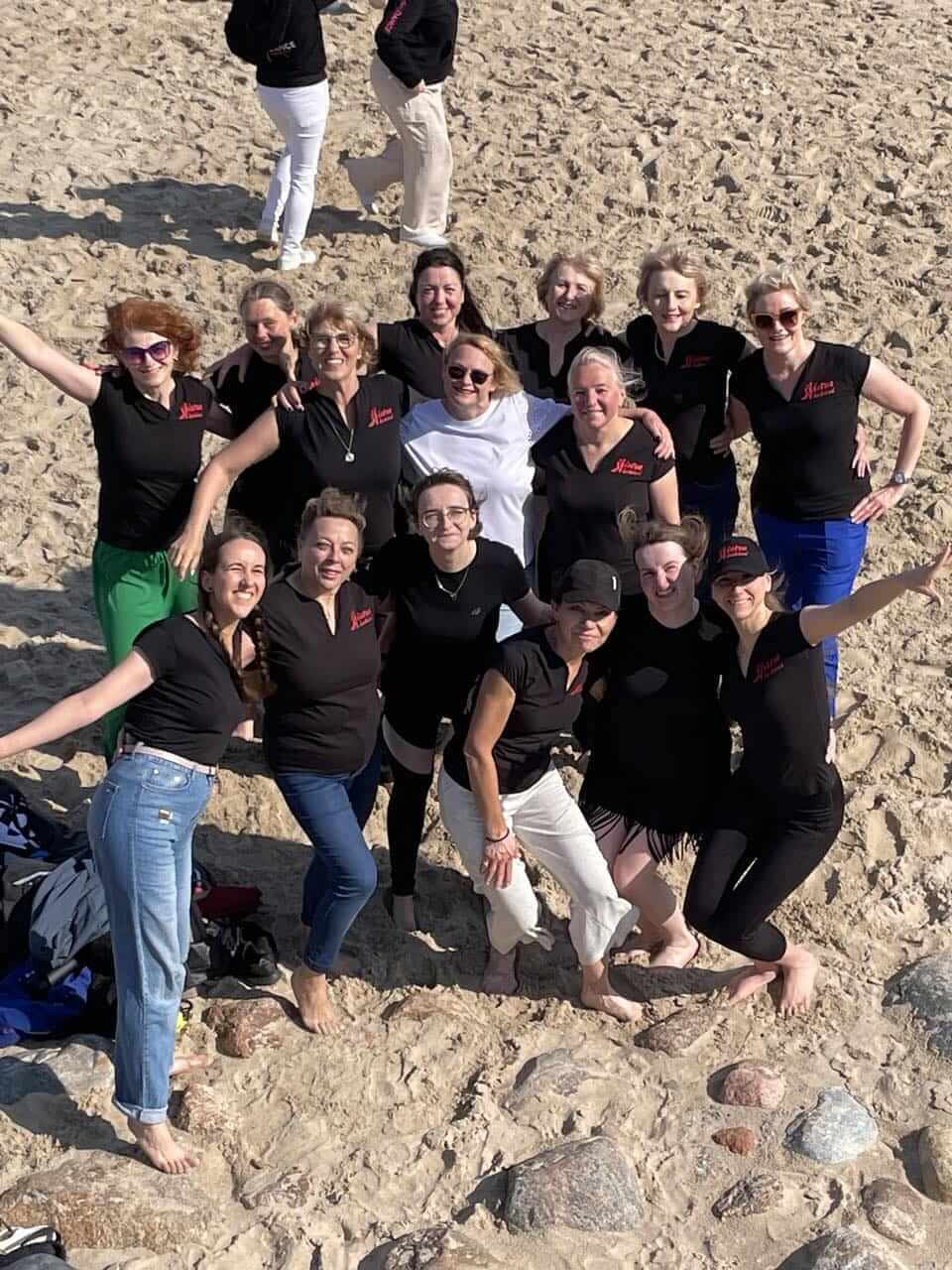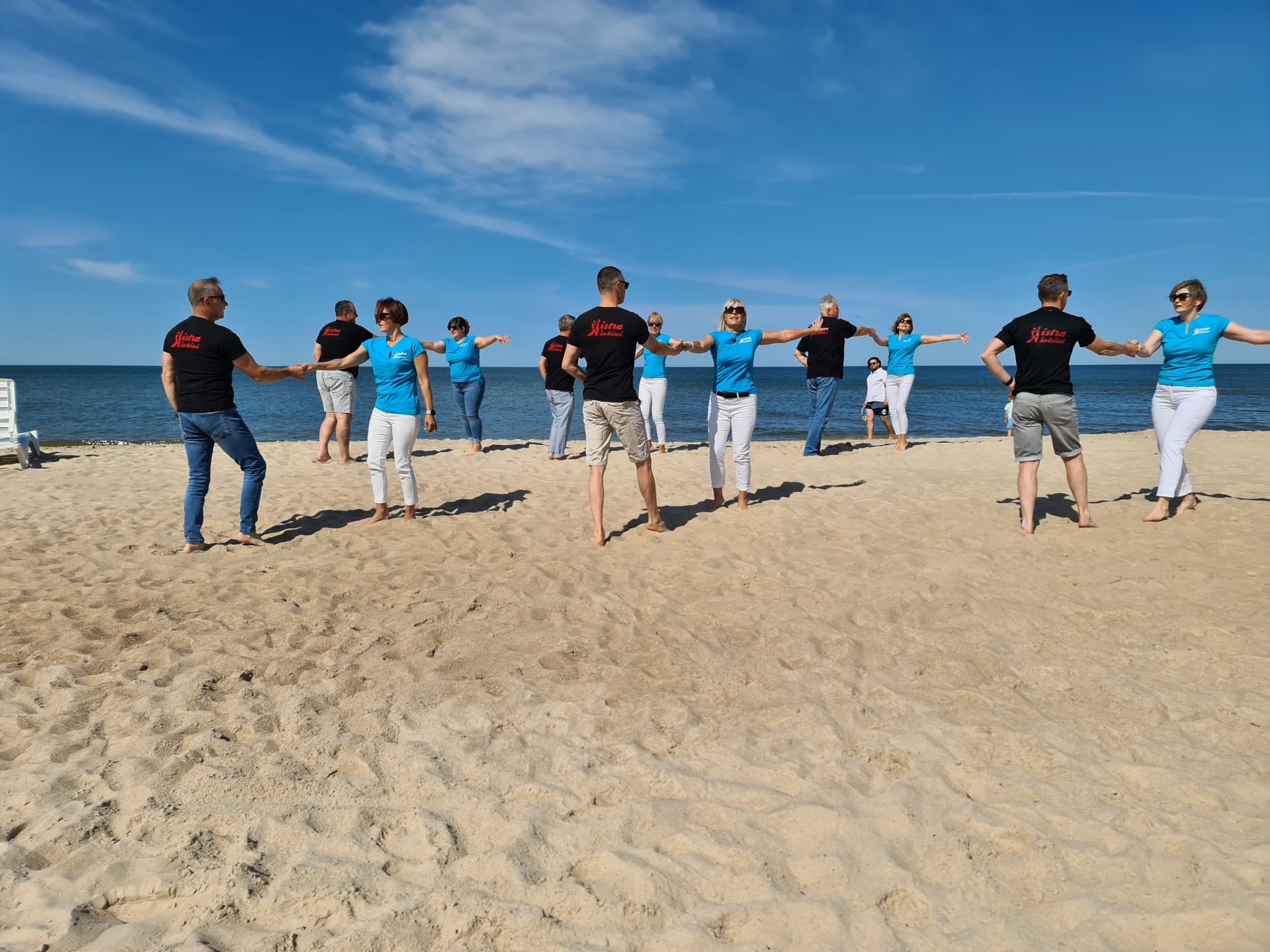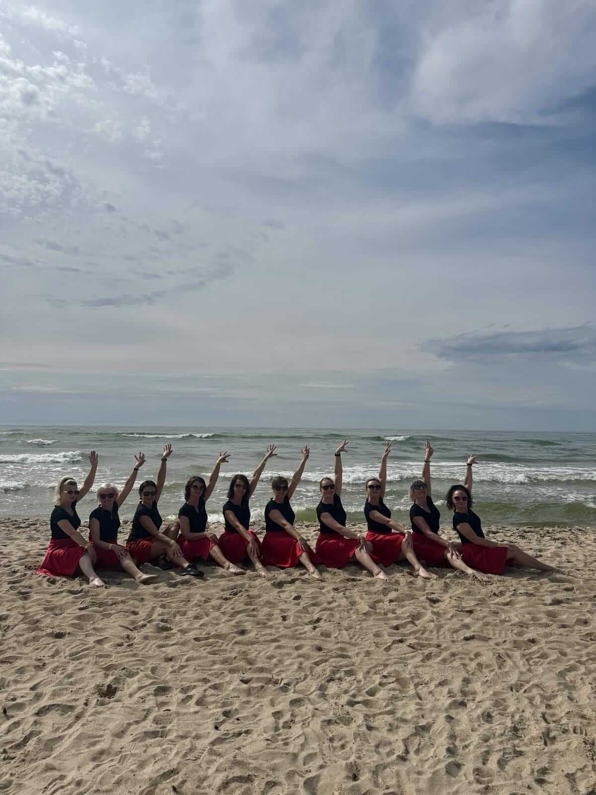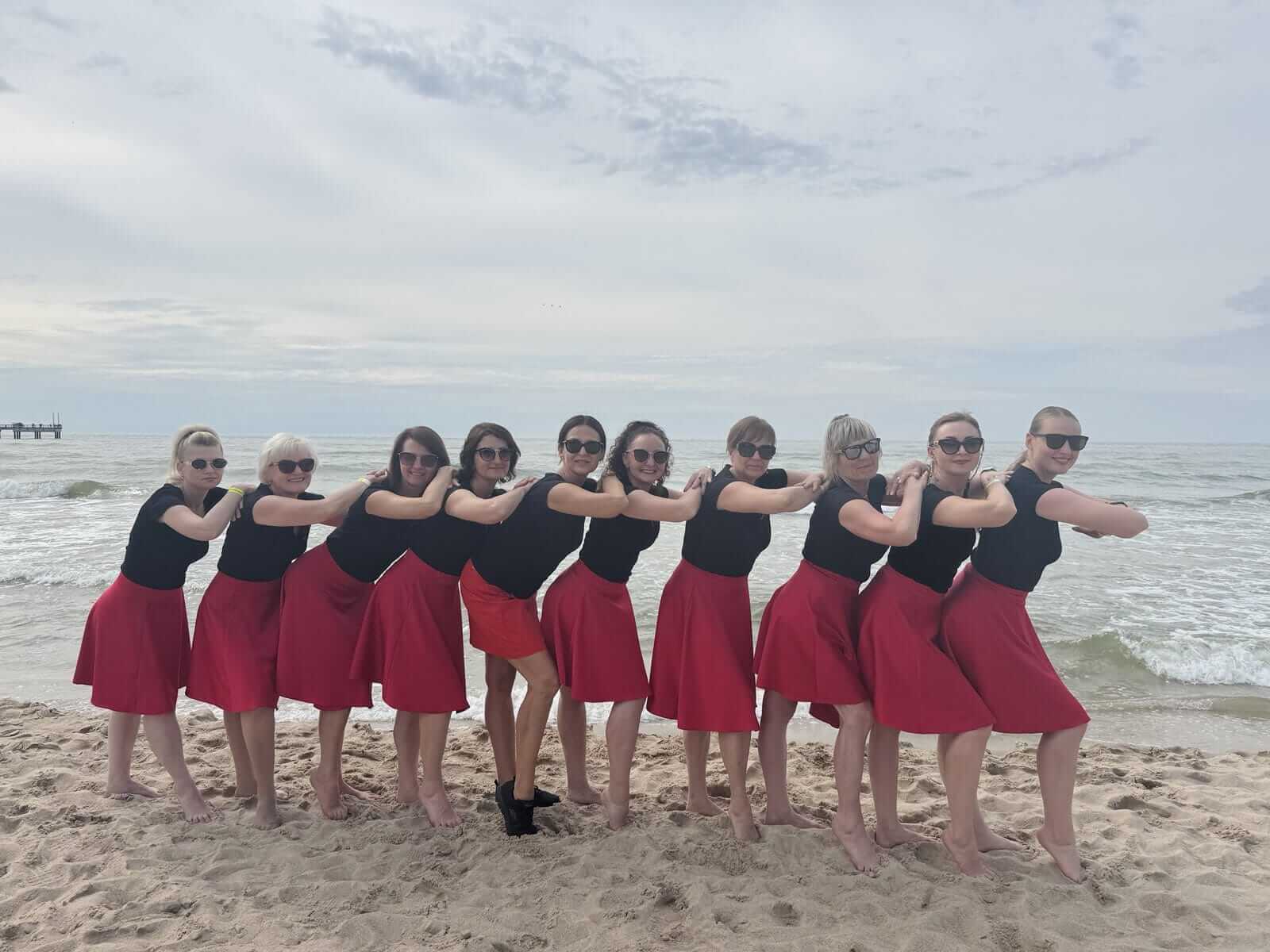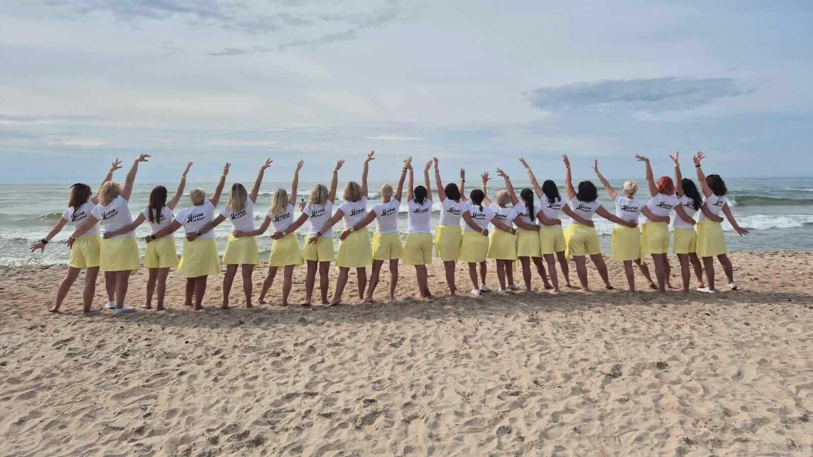 Line dancers in the beach