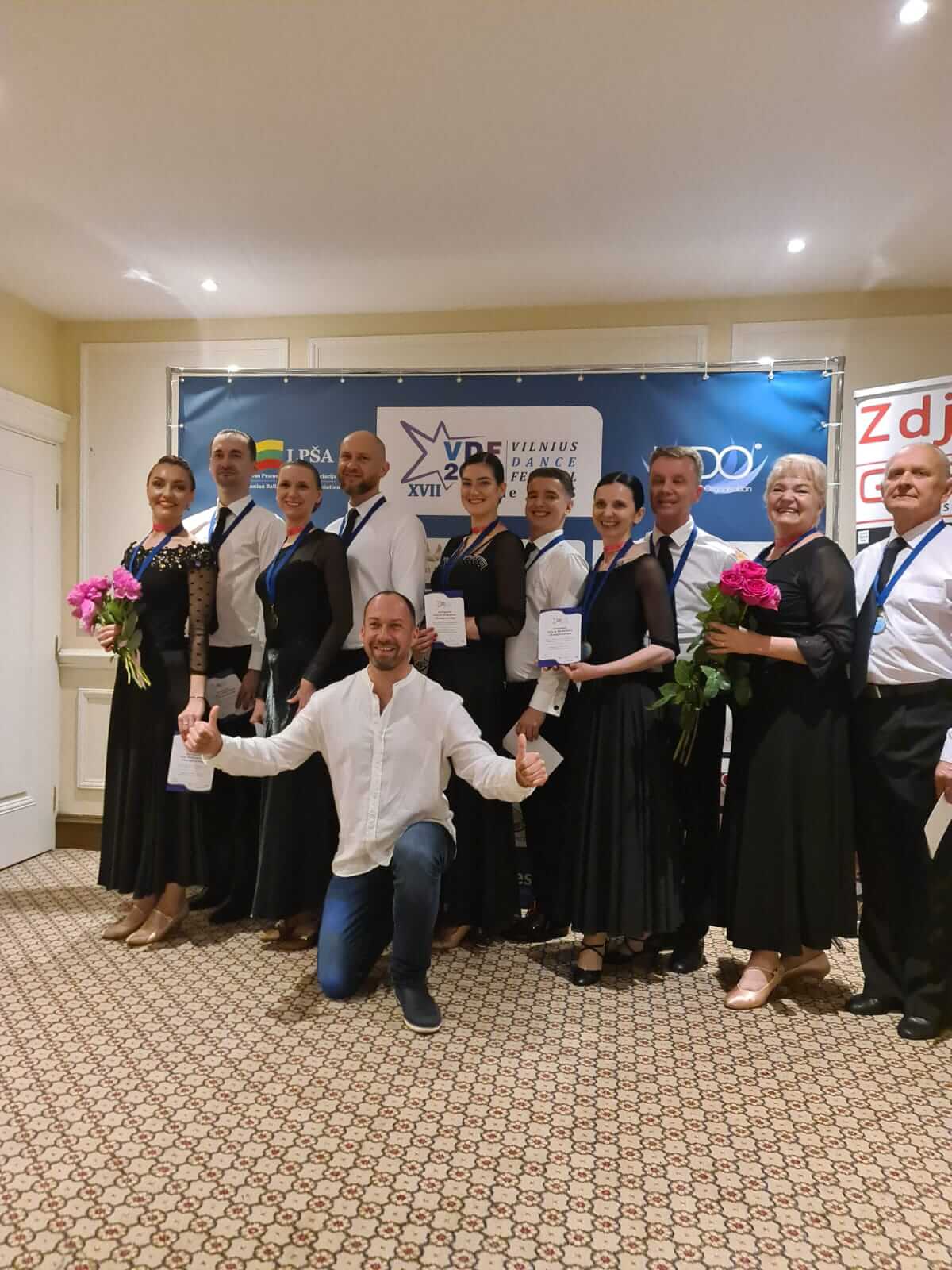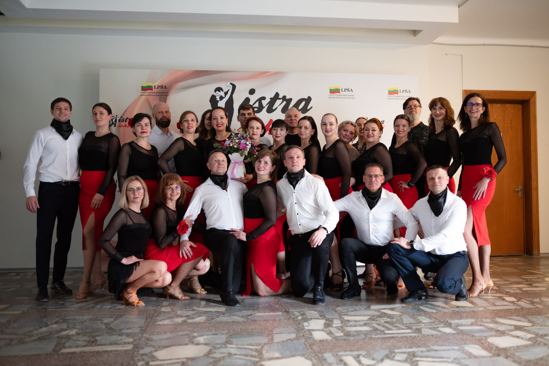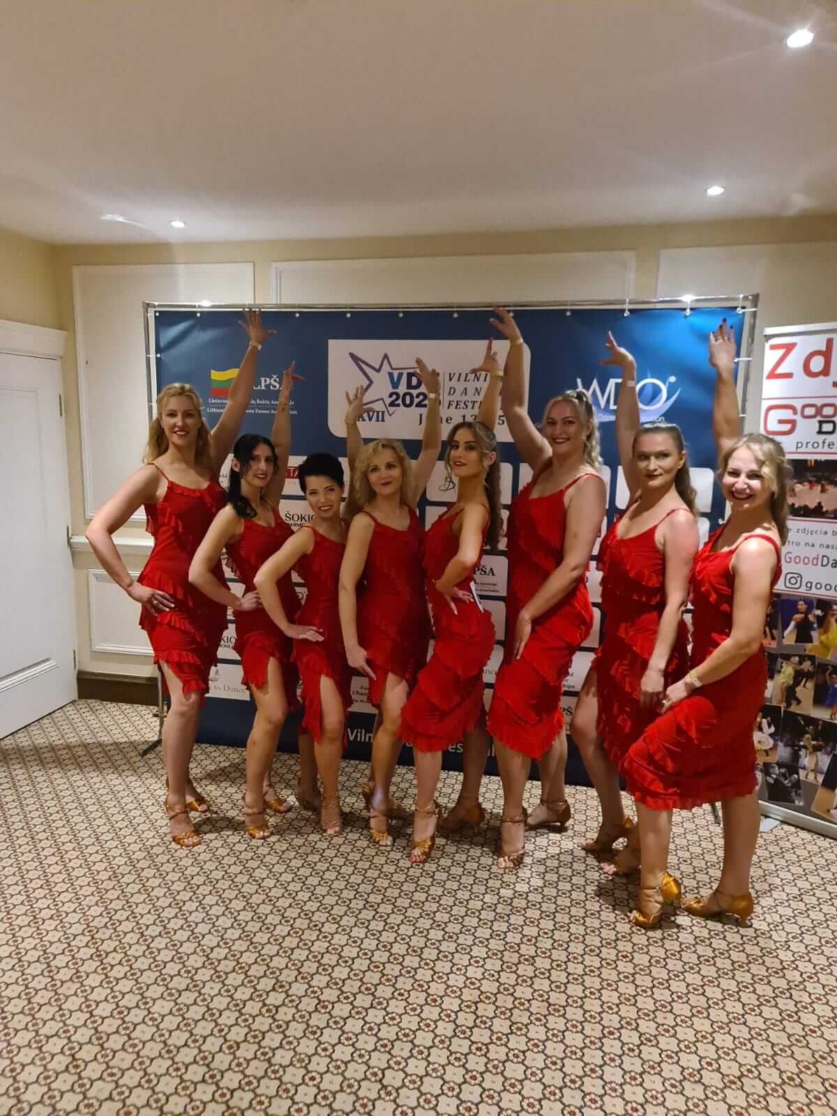 Panevežys dancers near stand in the party