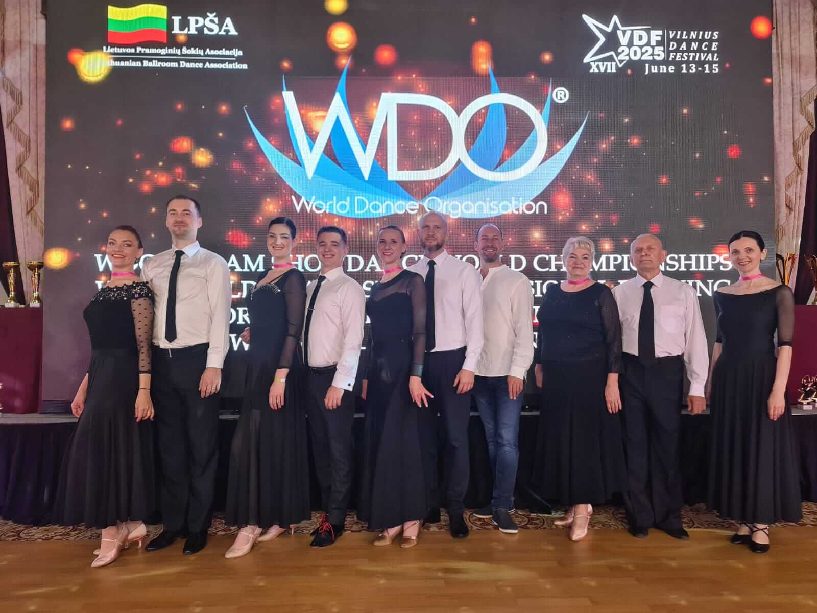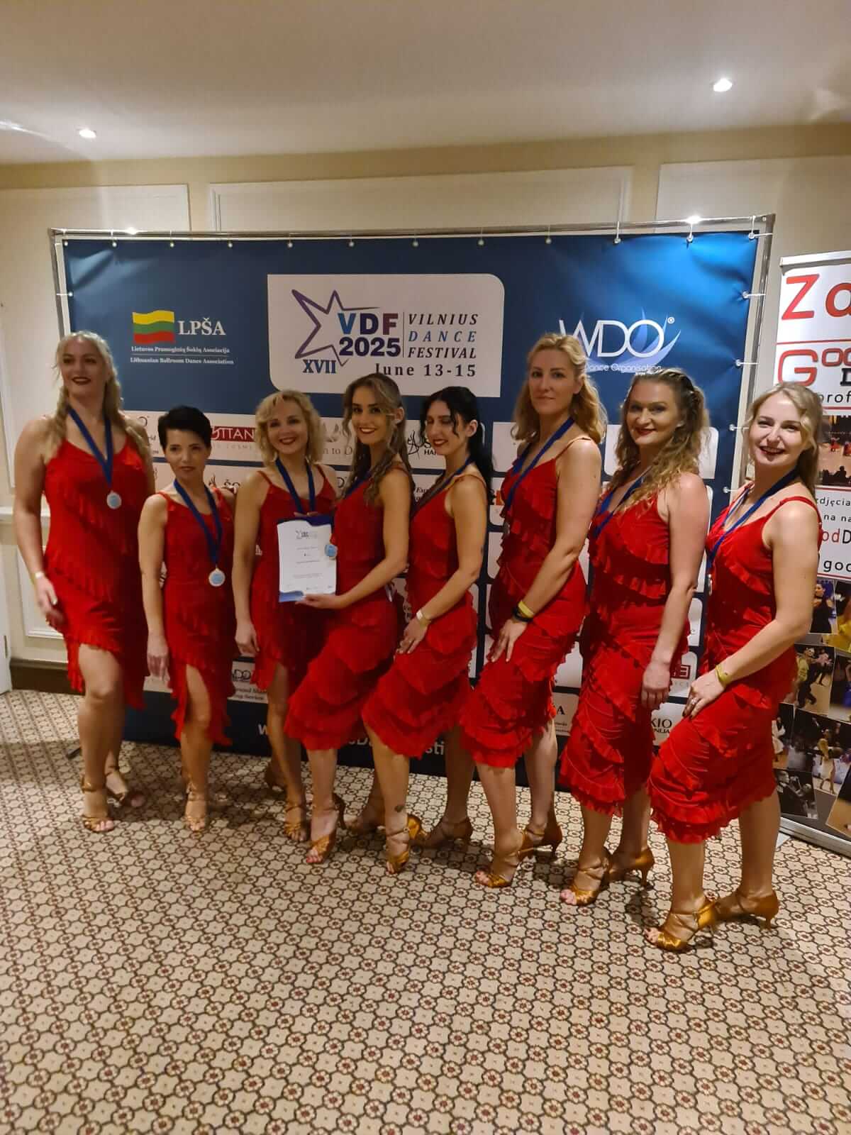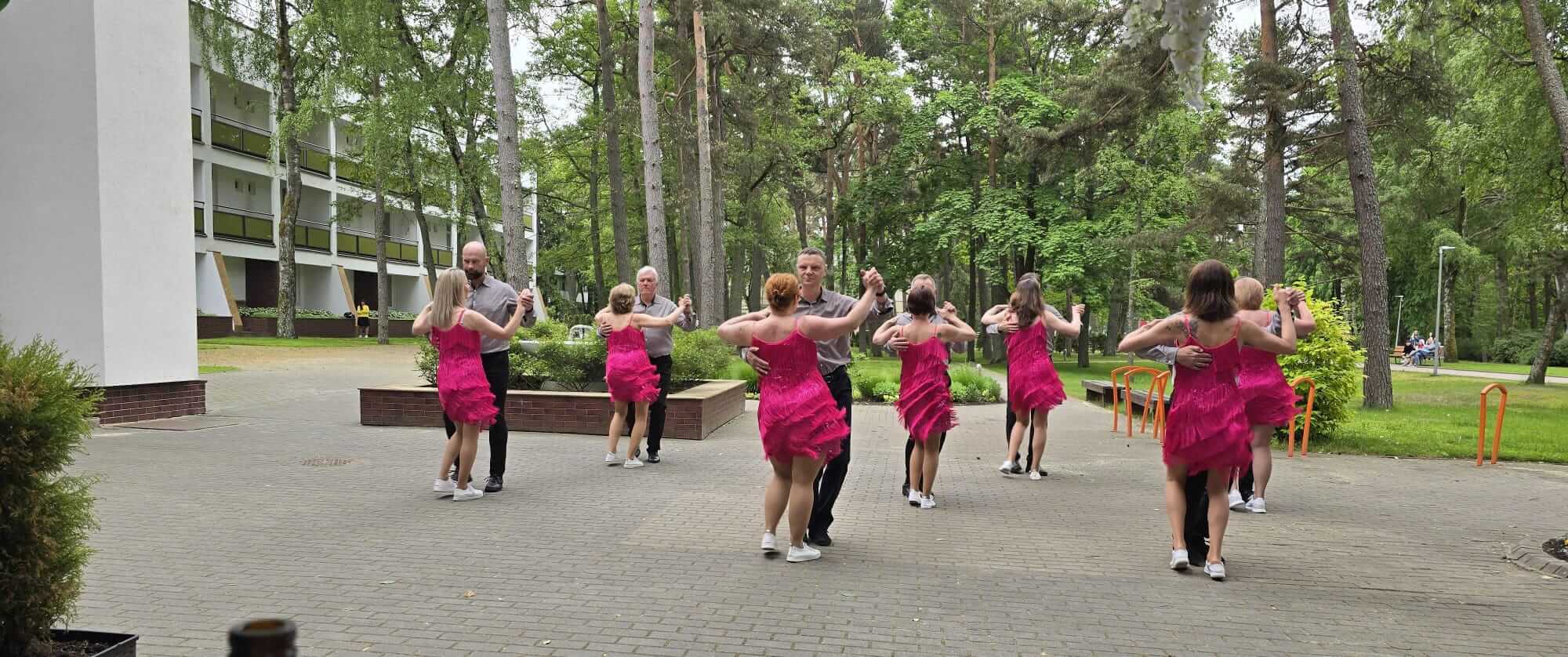 Panevežys dancers near stand in the party